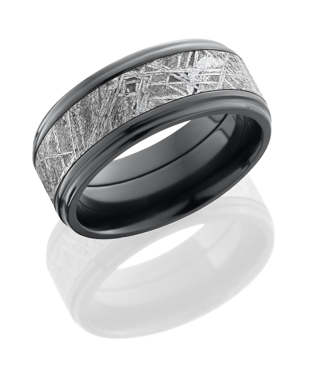 Zirconium 9mm flat band with grooved eges with 5mm meteorite center