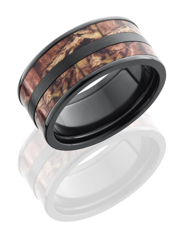 Zirconium 10mm Flat Band with 2 3mm of MossyOak Infinity Camo