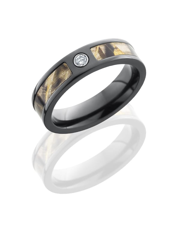 Zirconium 5mm Flat Band with 3mm of Realtree Max4 Camo and Flush Set White Round Diamond