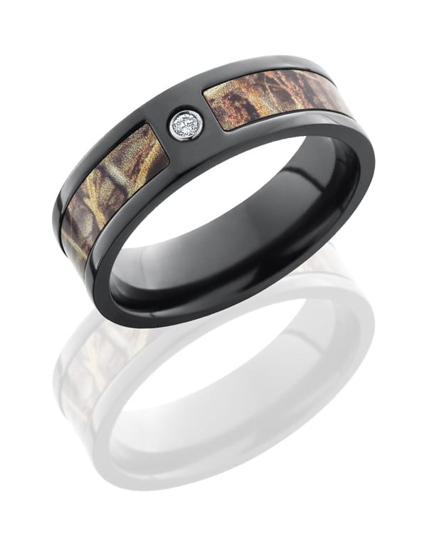 Zirconium 7mm Flat Band with 5mm of Realtree Max4 Camo and Flush Set White Round Diamond